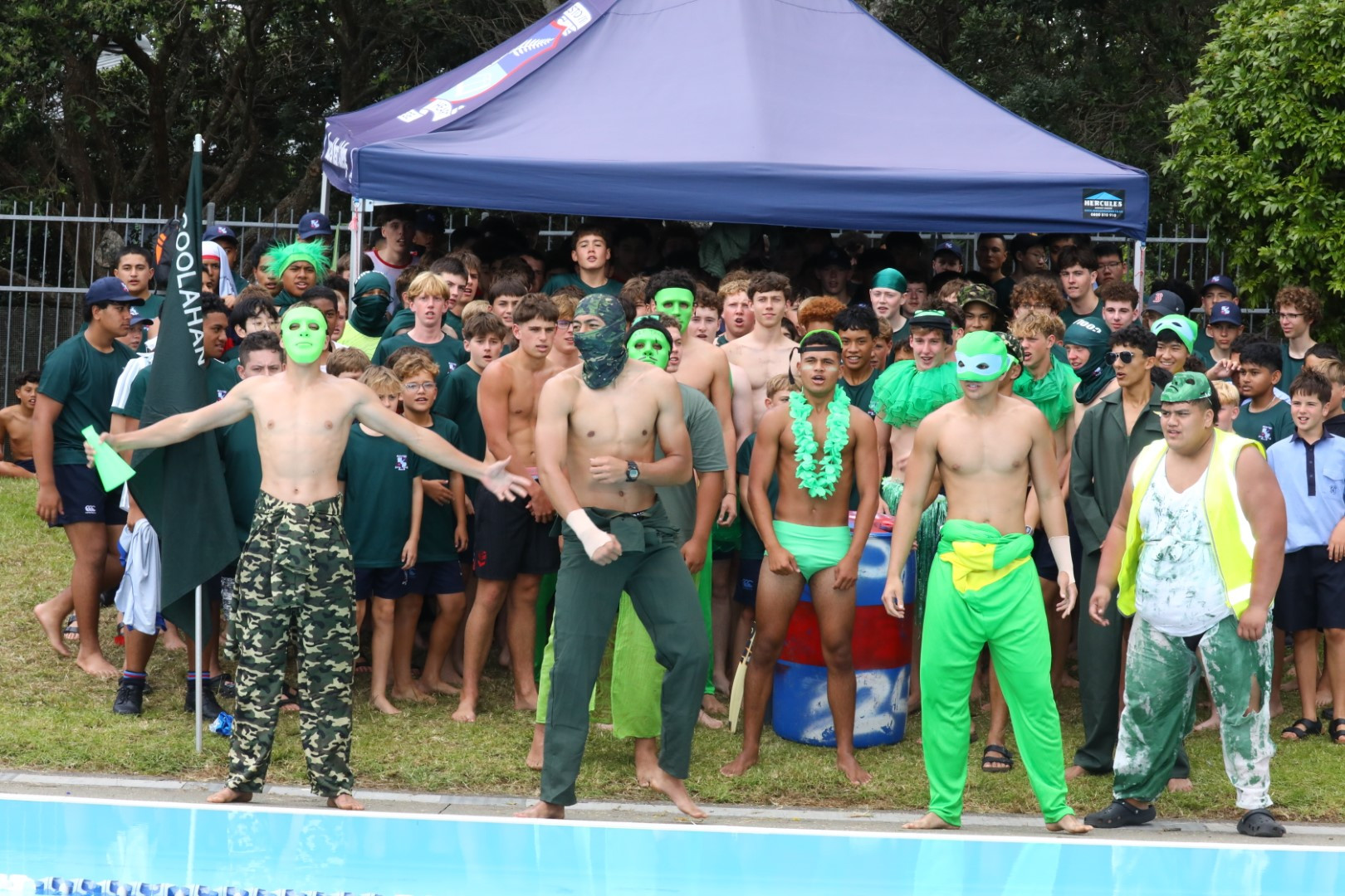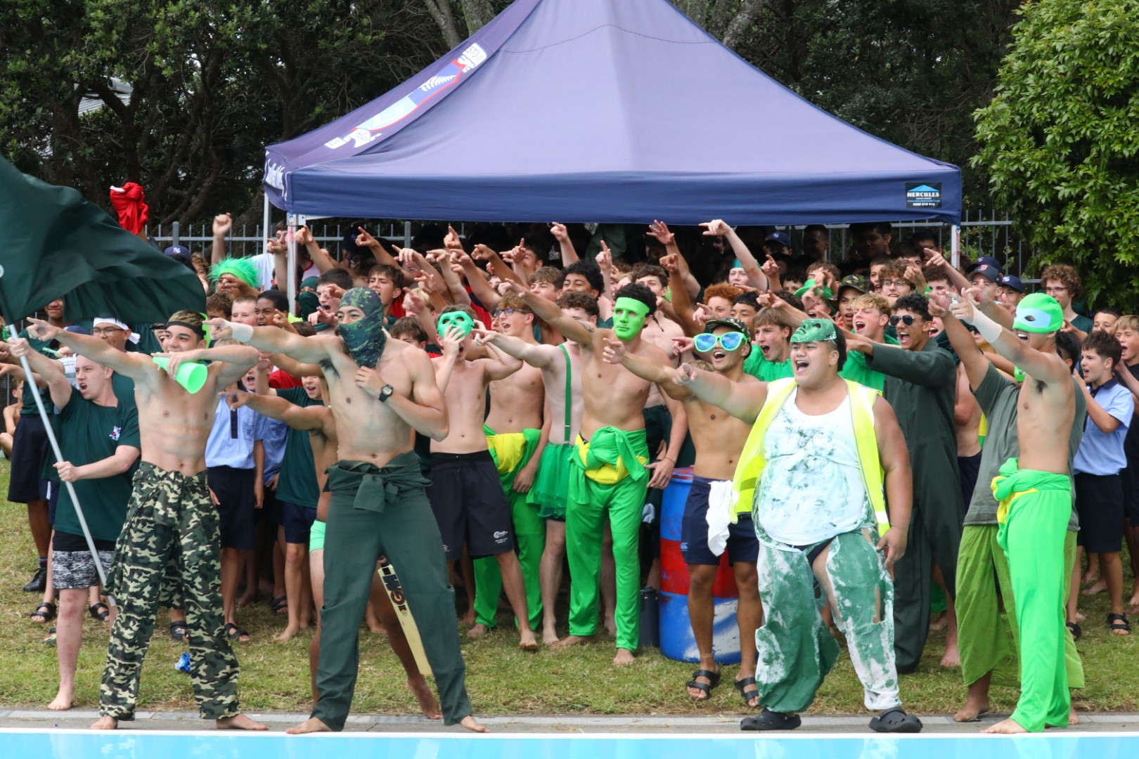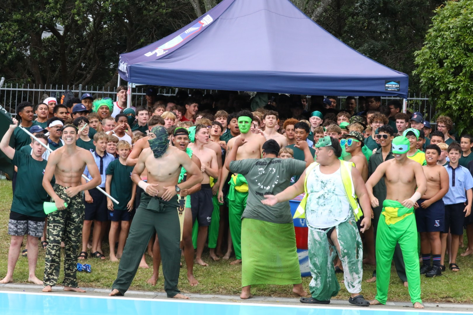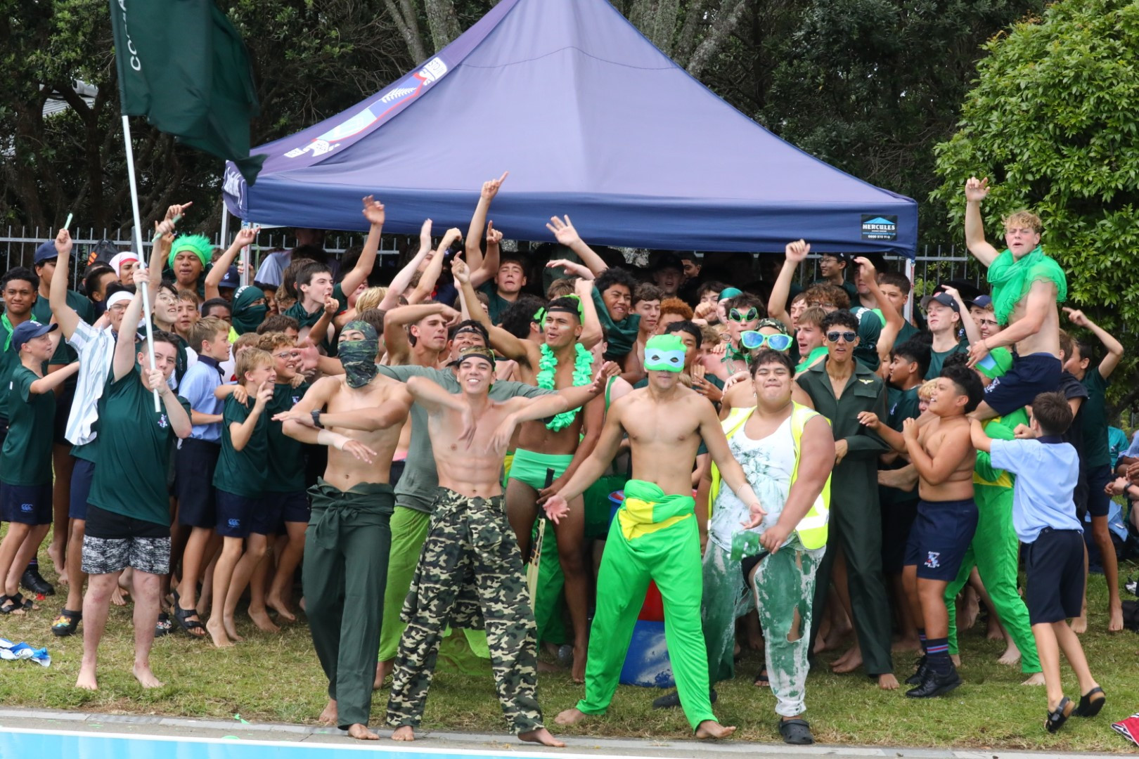 During the Years 9-13 Swimming Sports, we held our annual house chant competition. The Year 13s stepped it up this year with everyone outfitted in elaborate house-coloured costumes, setting the stage for an incredible display of both original and traditional house chants from each house.