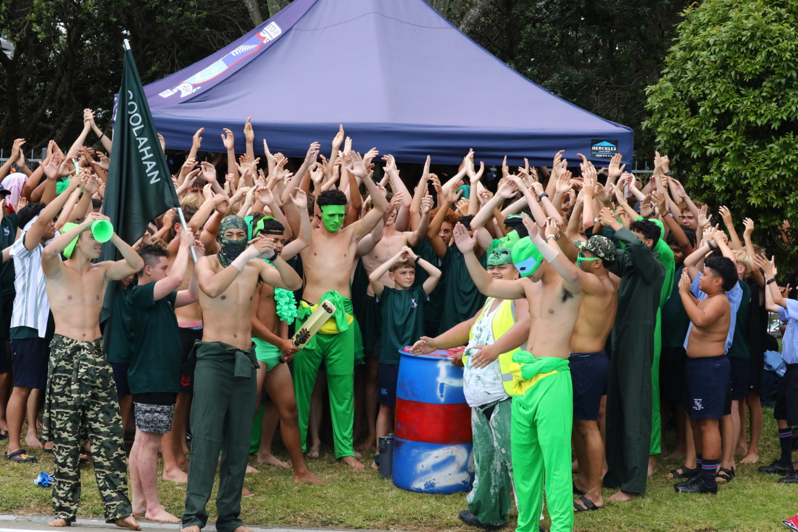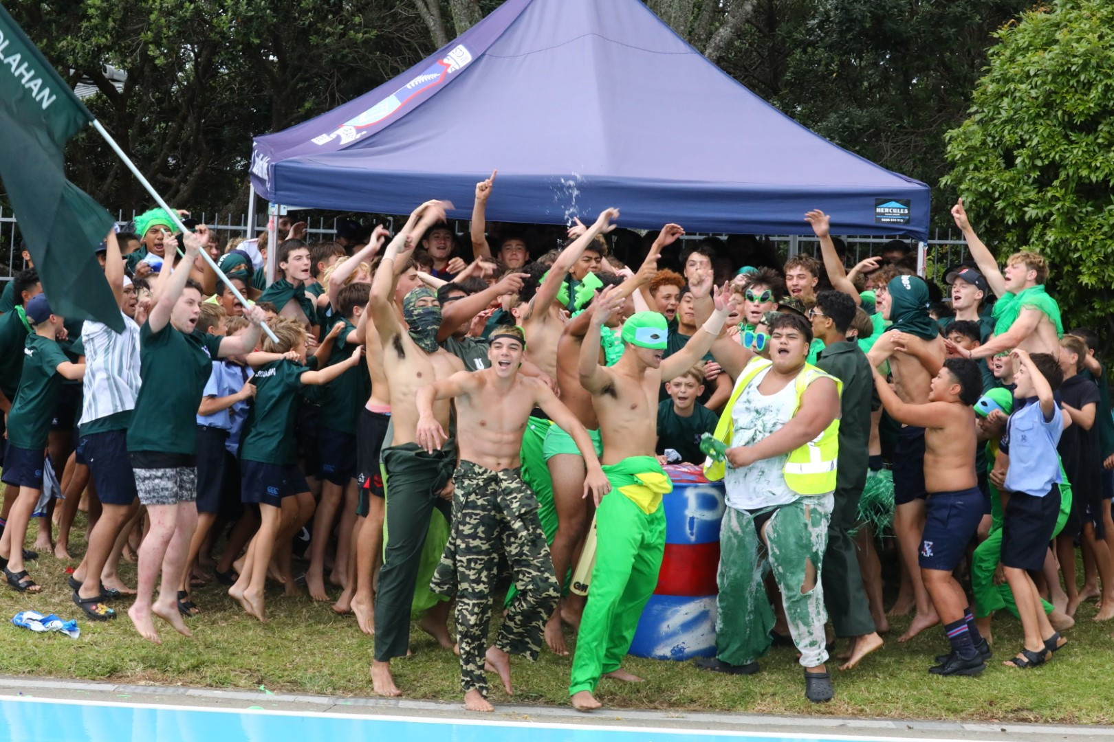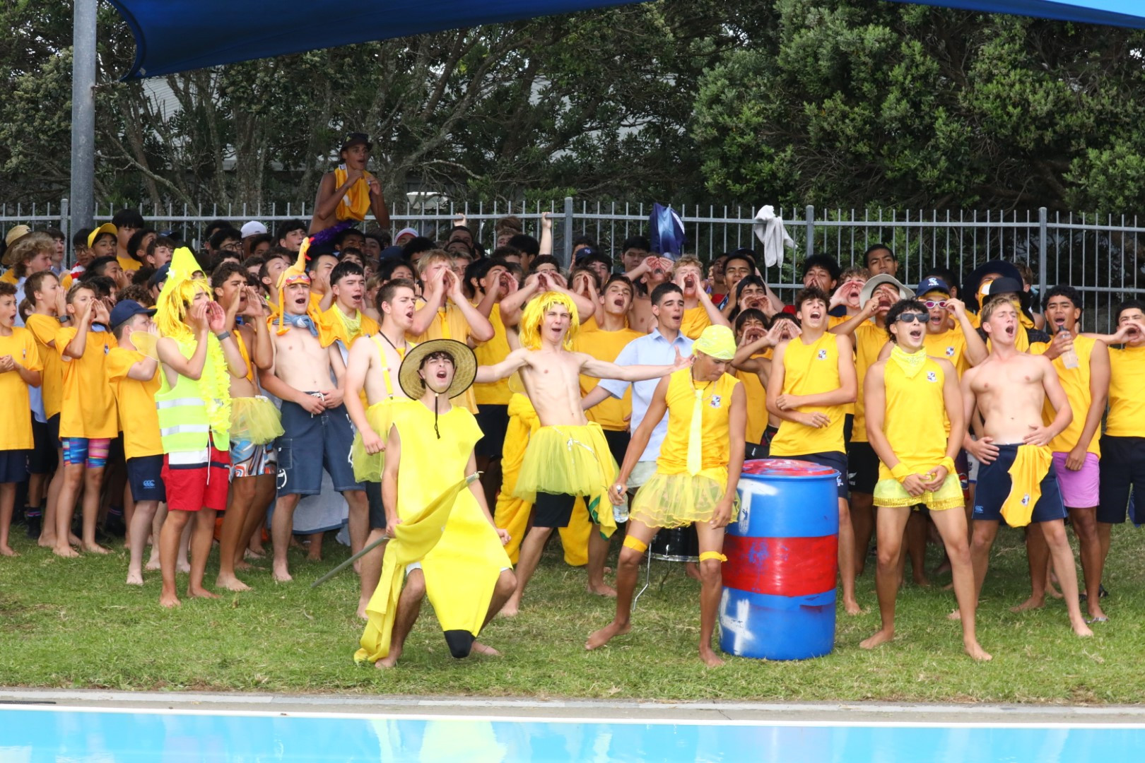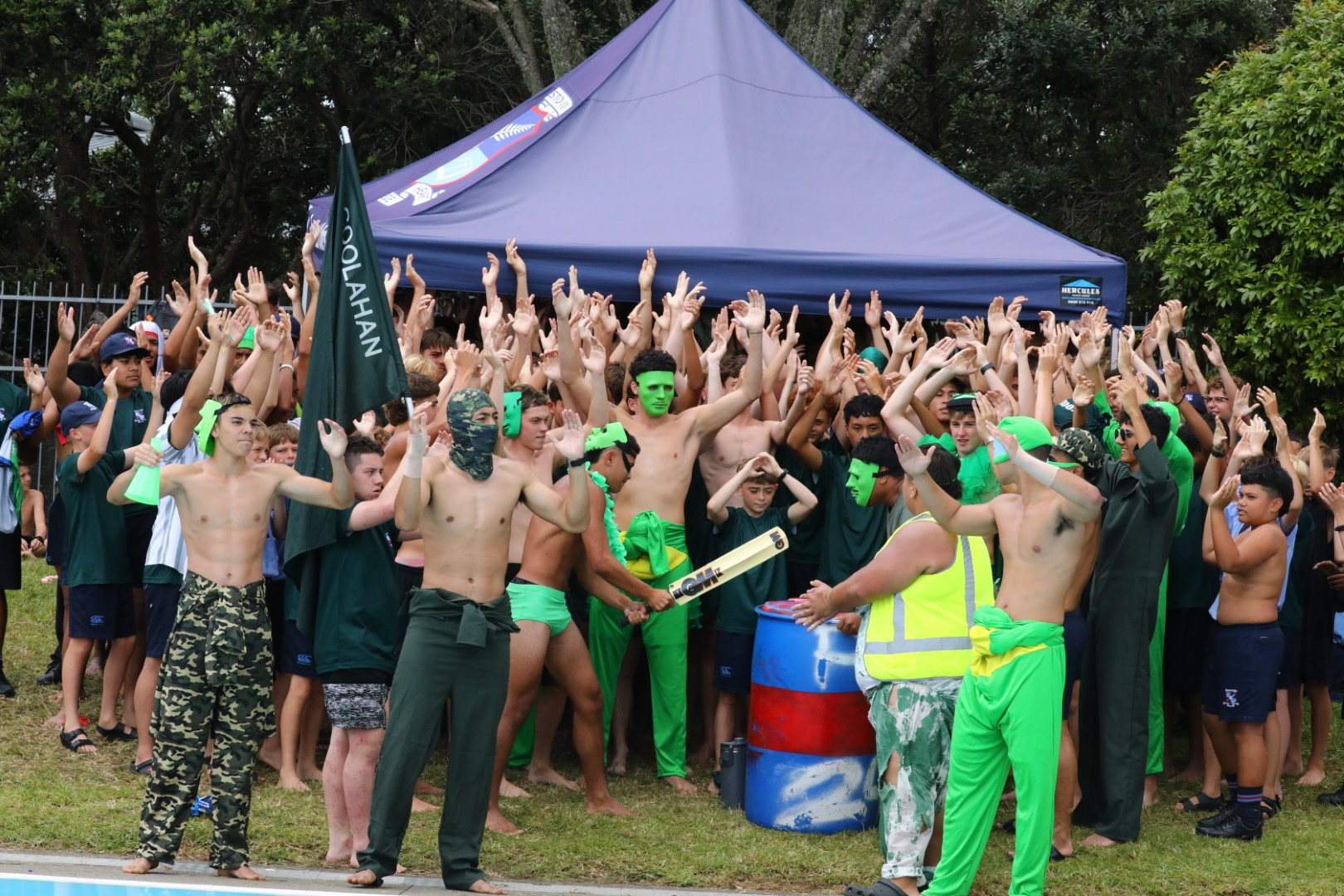 During the Years 9-13 Swimming Sports, we held our annual house chant competition. The Year 13s stepped it up this year with everyone outfitted in elaborate house-coloured costumes, setting the stage for an incredible display of both original and traditional house chants from each house.