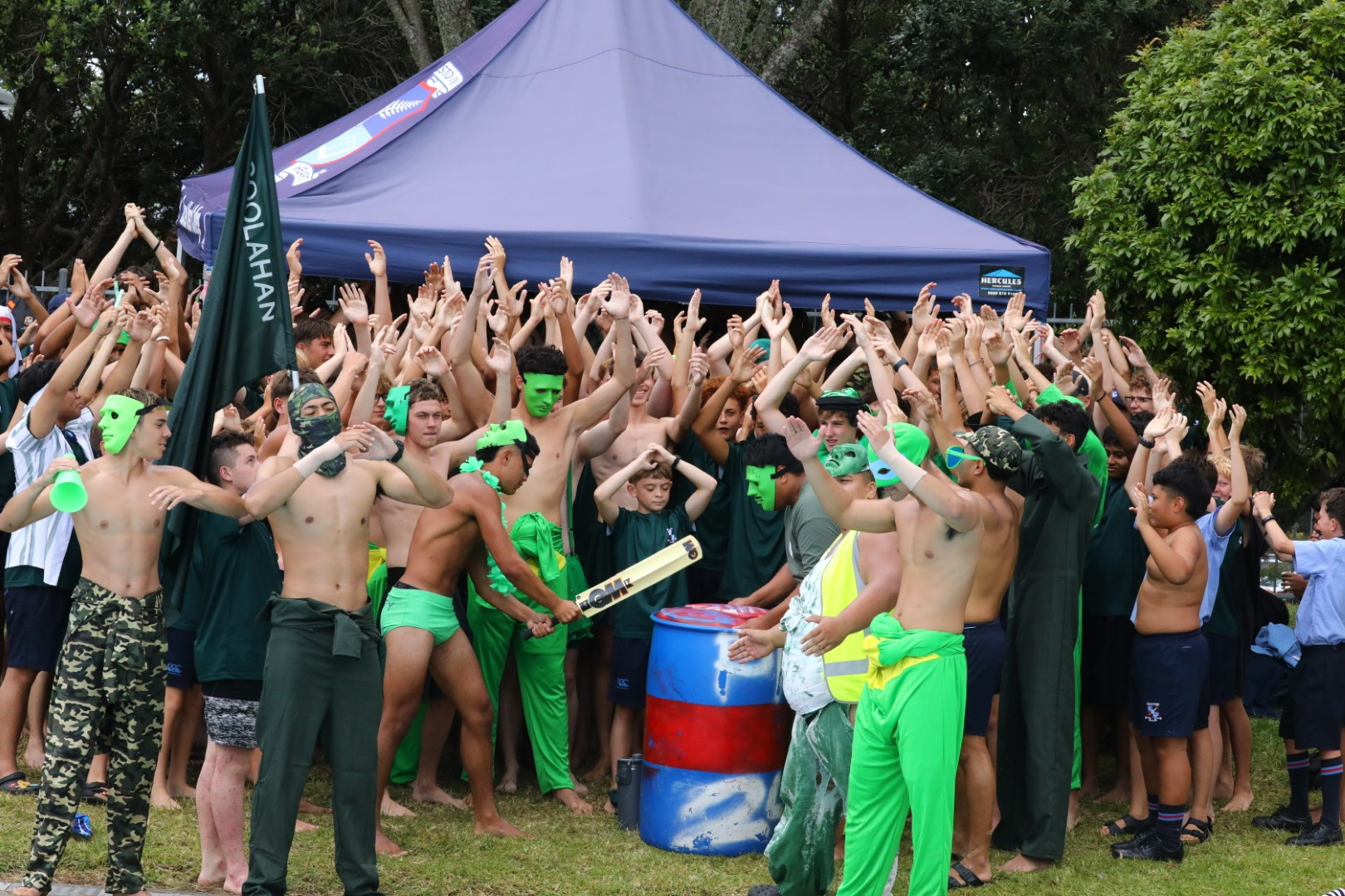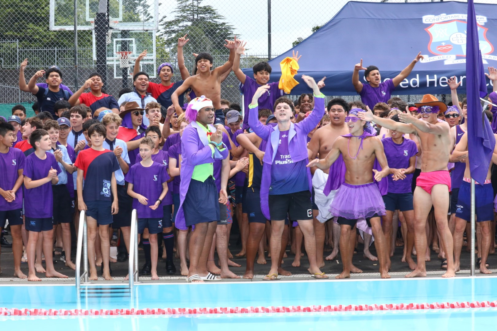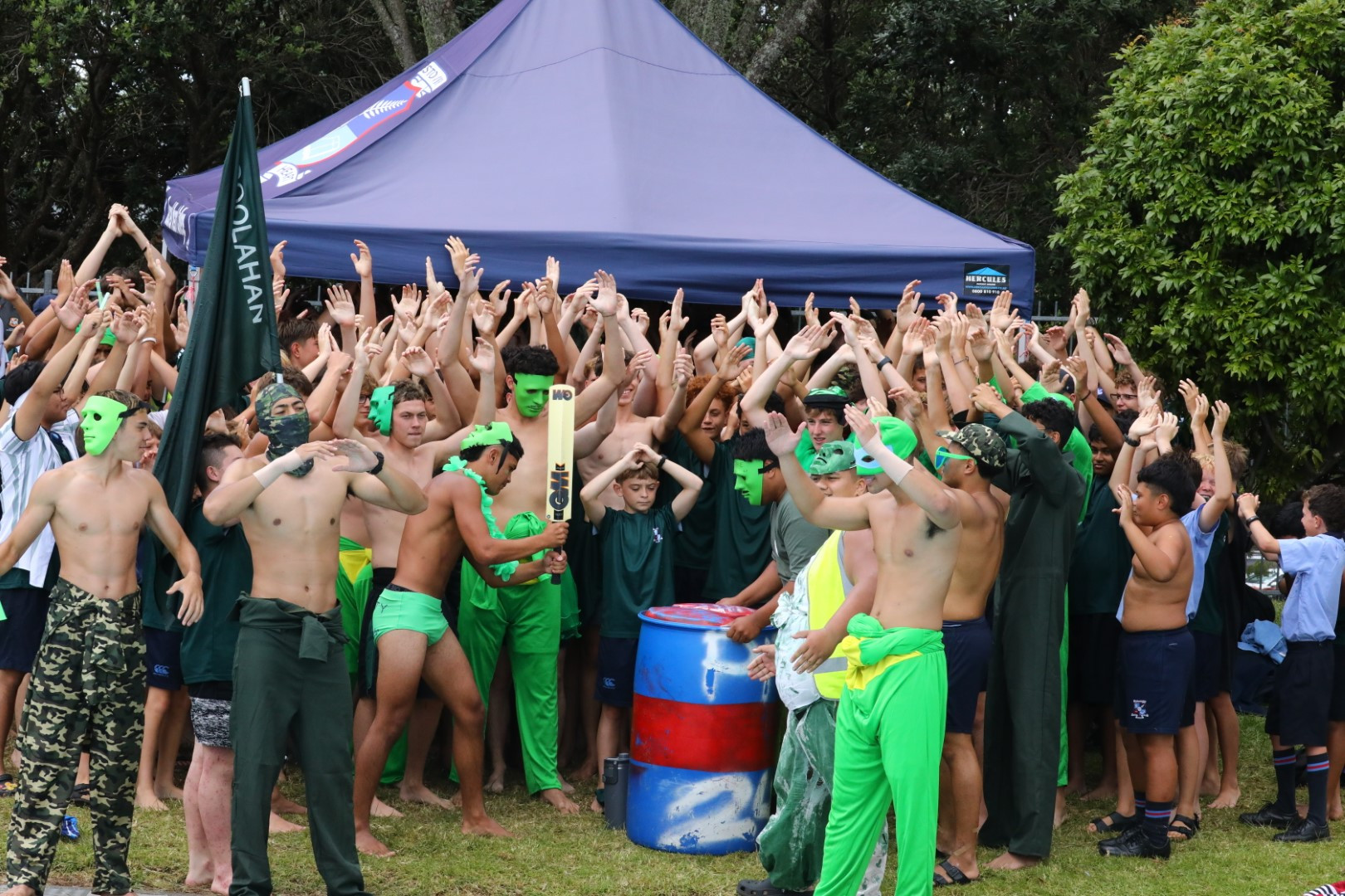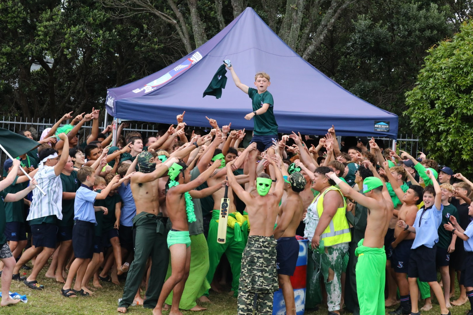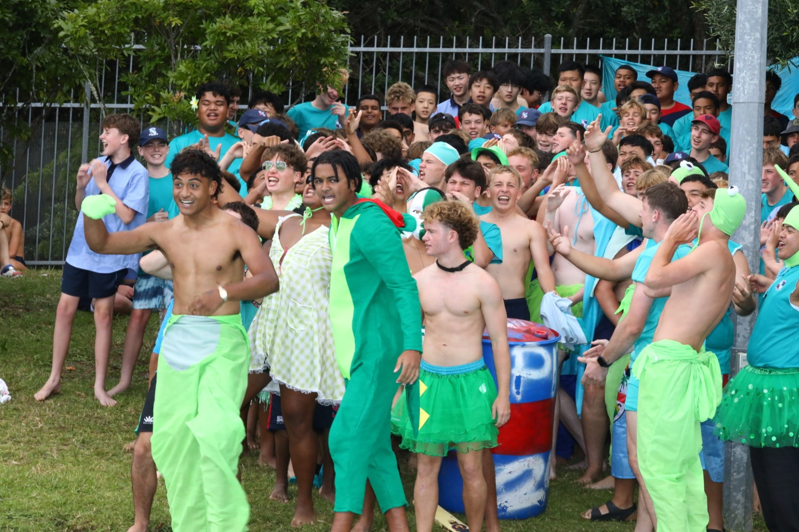 During the Years 9-13 Swimming Sports, we held our annual house chant competition. The Year 13s stepped it up this year with everyone outfitted in elaborate house-coloured costumes, setting the stage for an incredible display of both original and traditional house chants from each house.