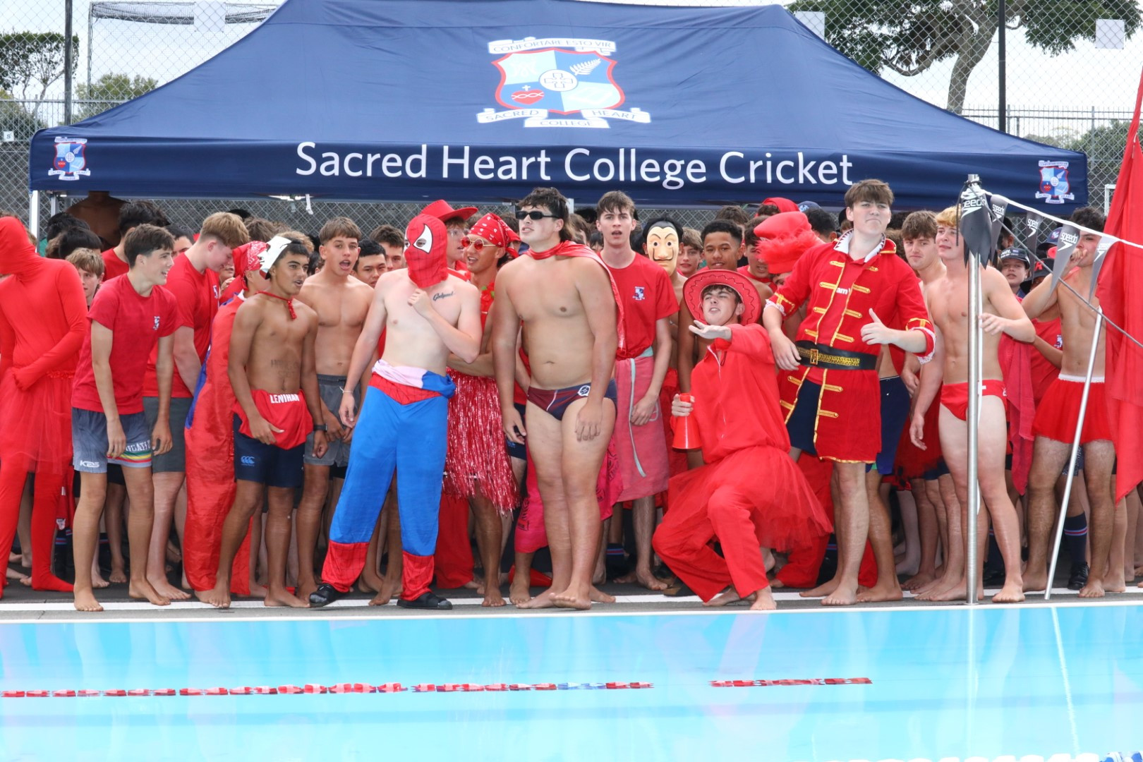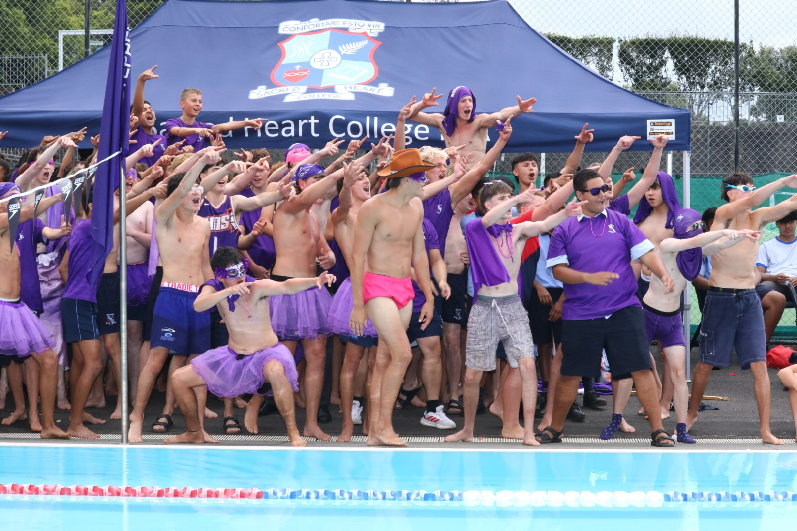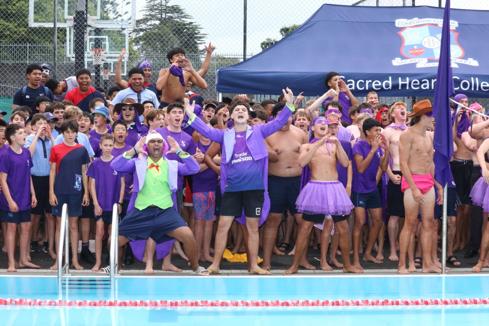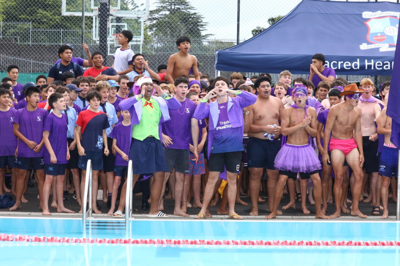 During the Years 9-13 Swimming Sports, we held our annual house chant competition. The Year 13s stepped it up this year with everyone outfitted in elaborate house-coloured costumes, setting the stage for an incredible display of both original and traditional house chants from each house.