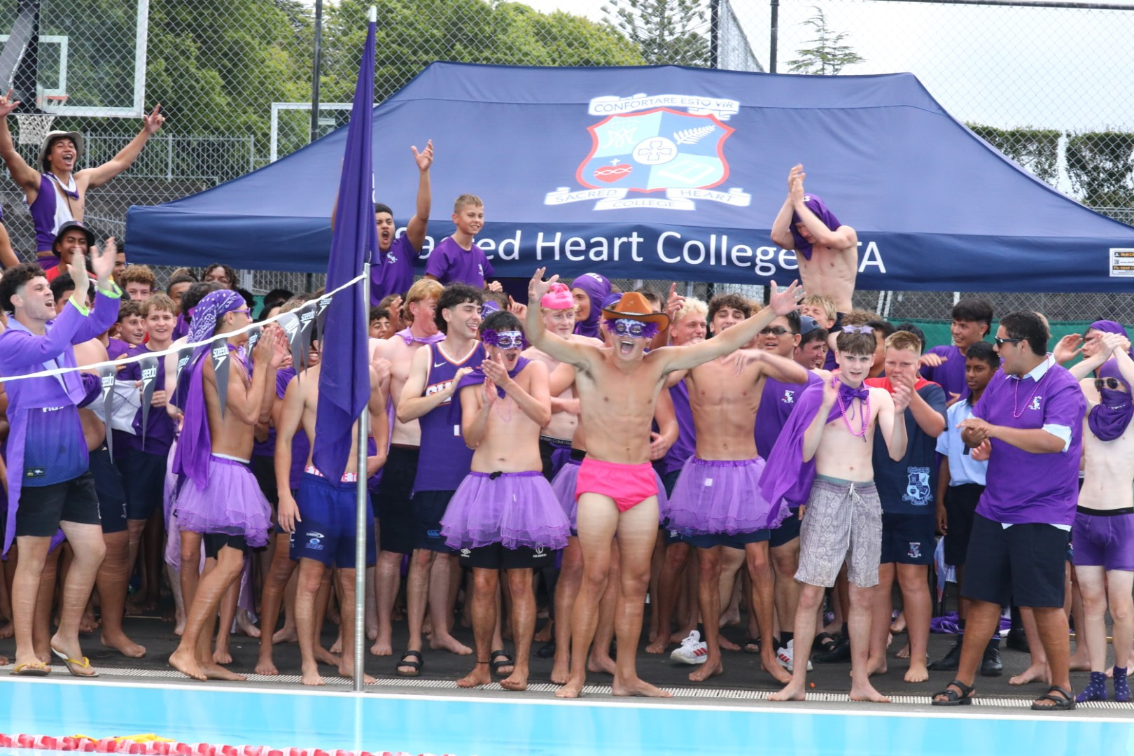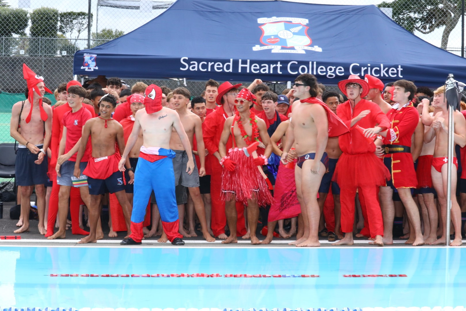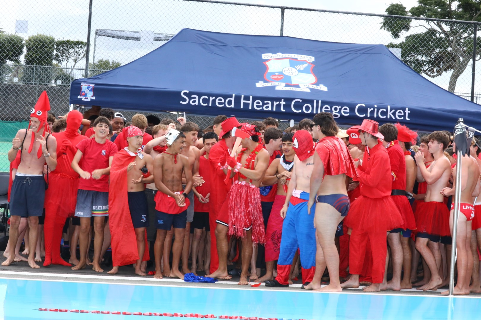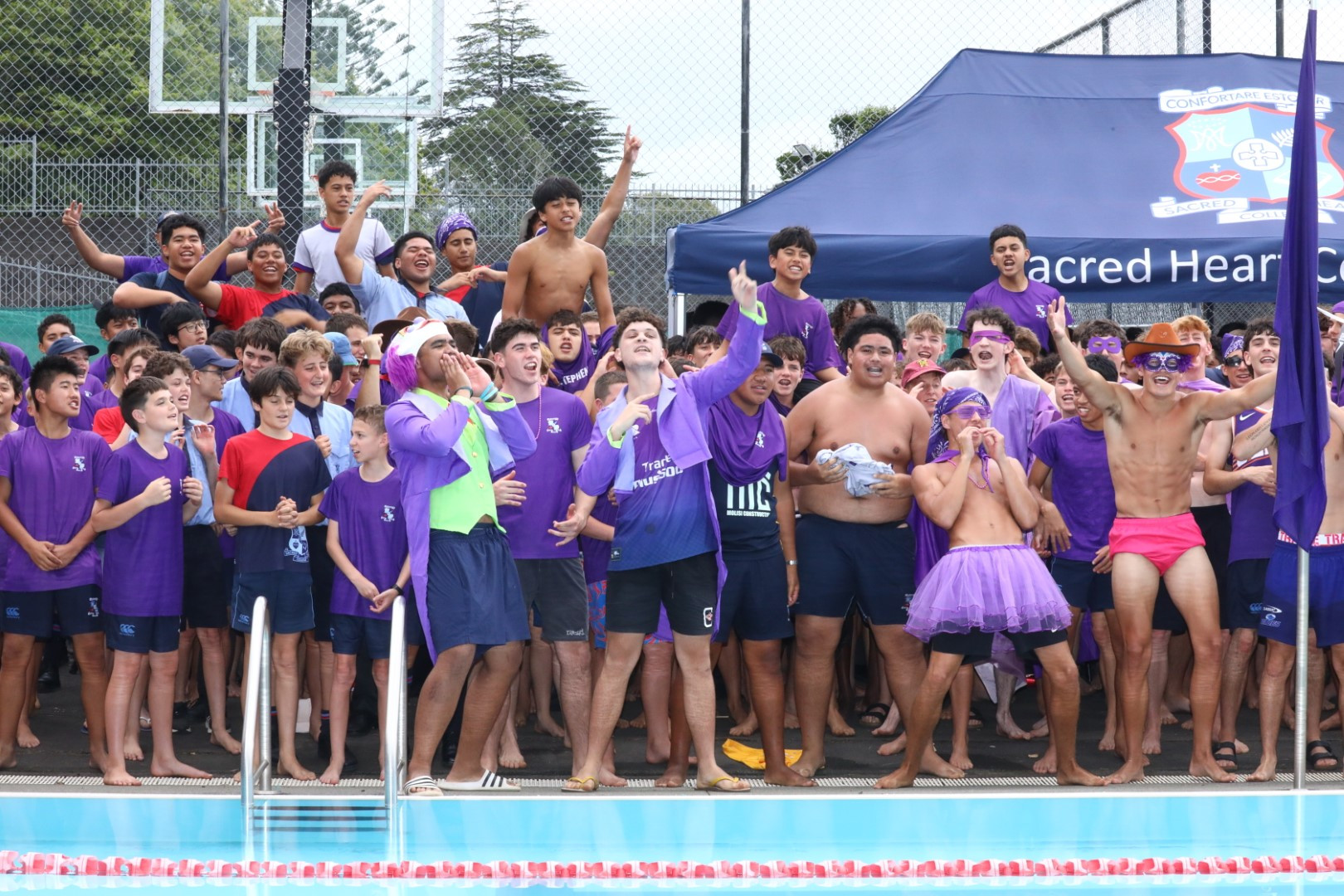During the Years 9-13 Swimming Sports, we held our annual house chant competition. The Year 13s stepped it up this year with everyone outfitted in elaborate house-coloured costumes, setting the stage for an incredible display of both original and traditional house chants from each house.